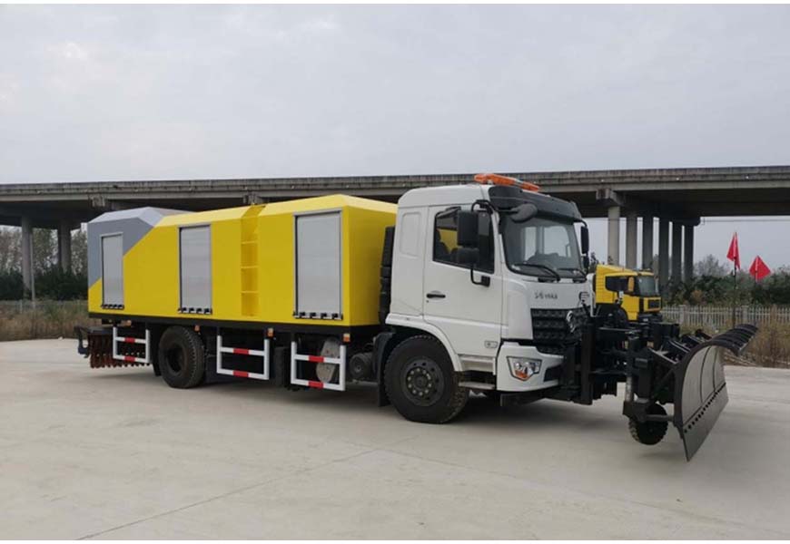 | 上裝配置 | 前置推雪鏟、中置破冰輥+除冰鏟、后置掃雪滾刷,150Kw副發(fā)動(dòng)機(jī),封閉式廂體結(jié)構(gòu)帶中部爬梯,左右各 3 個(gè)鋁合金卷簾門(mén),尾部配備雙大箭頭 LED 指示燈+LED 顯示屏,叁段式獨(dú)立避障,每段都具有自動(dòng)上彈、自動(dòng)復(fù)位的避障功能,具有浮動(dòng)和隨路面仿形功能。除雪鏟鏟刃和破冰輥刀片高強(qiáng)度耐磨合金鋼,硬度 50-55HR。后置除雪滾刷,用聚丙烯刷毛和強(qiáng)性鋼絲混合制成。 | ||